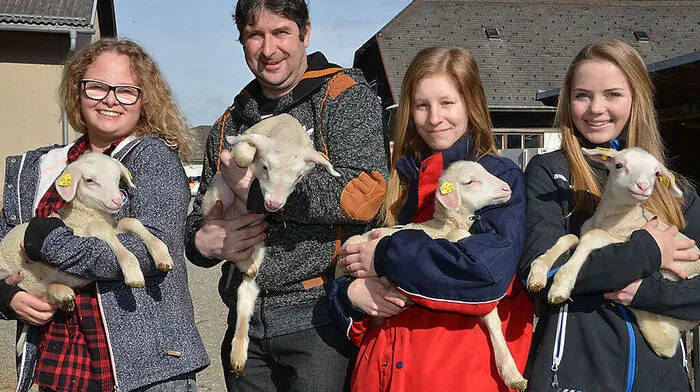 Lisa Kadras, Martin Ladinig, Nadine Rauniak und Lilli Nageler freuen sich über die herzigen Lämmer