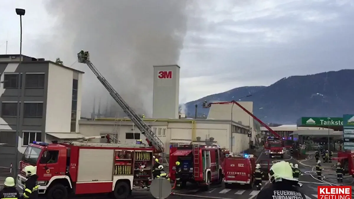 Villach: Firmengebäude in Vollbrand