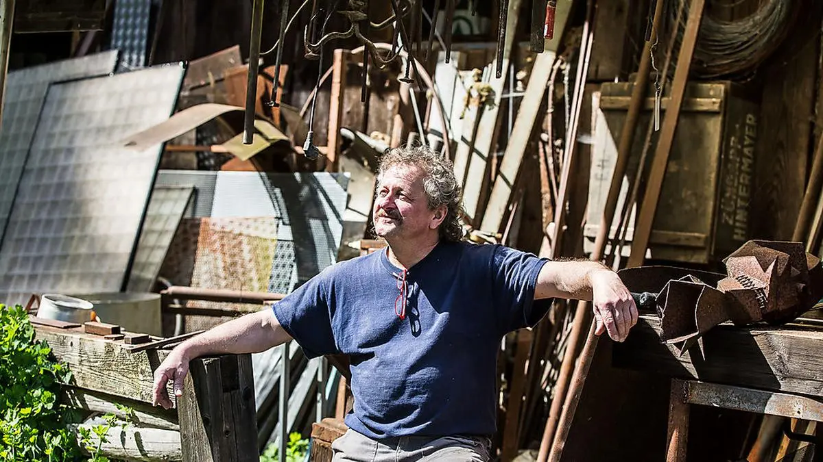 Viele sagen, Künstler sind anders. Eigen. Nehmen das Leben lockerer. Leben in den Tag hinein. „Stimmt nicht“, sagt Andres Klimbacher. Der Familienmensch wohnt mit seiner Frau Tina seit gut 30 Jahren in Miedling, einer kleinen Ortschaft von Liebenfels, nahe am touristischen Wasserweg, die beiden Töchter Pamina und Lisa sind bereits ausgezogen. Das 200 Jahre alte Haus hat Klimbacher aufwendig angefangen zu restaurieren, fertig ist er aber noch lange nicht. „Es heißt ja, sobald das Haus fertig ist, kommt die Scheidung, deshalb lasse ich mir Zeit“, lacht Klimbacher.