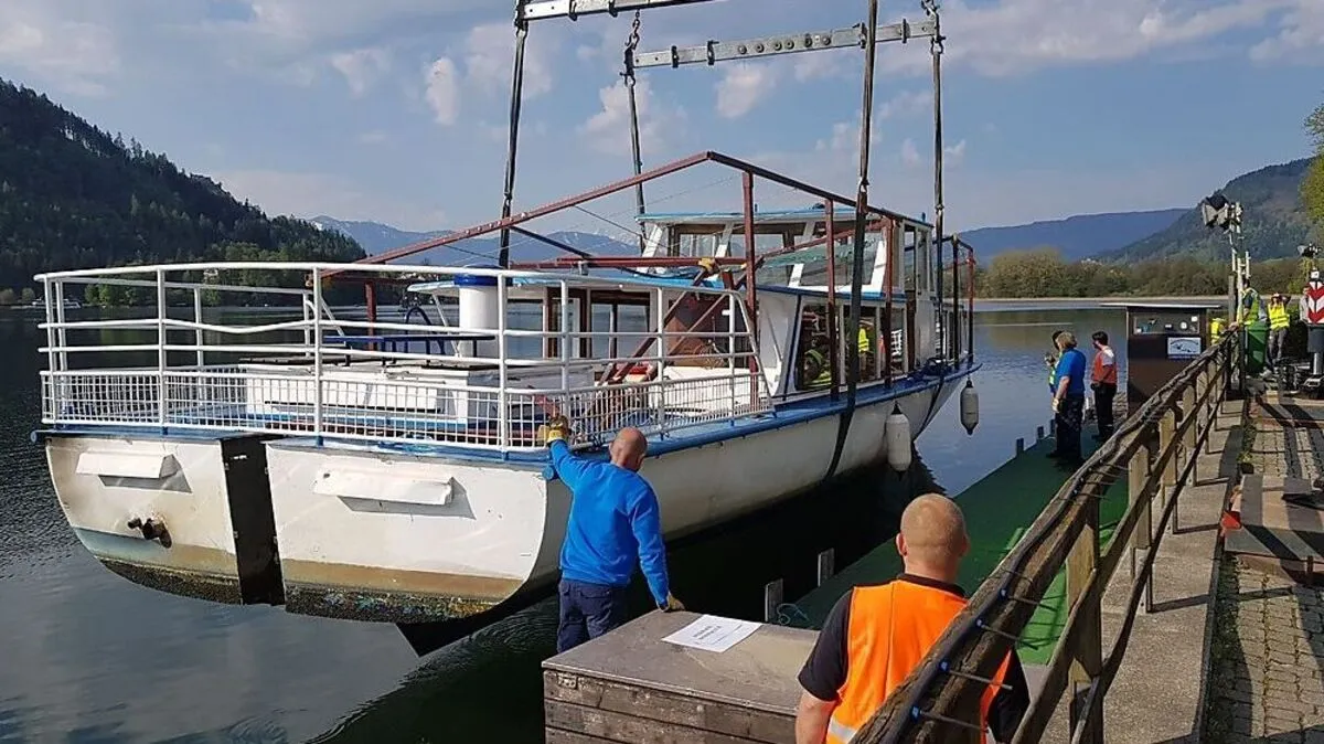 Das Linienschiff "MS Villach" verlässt heute für immer den Ossiacher See - per Riesenkran und Tieflader.
