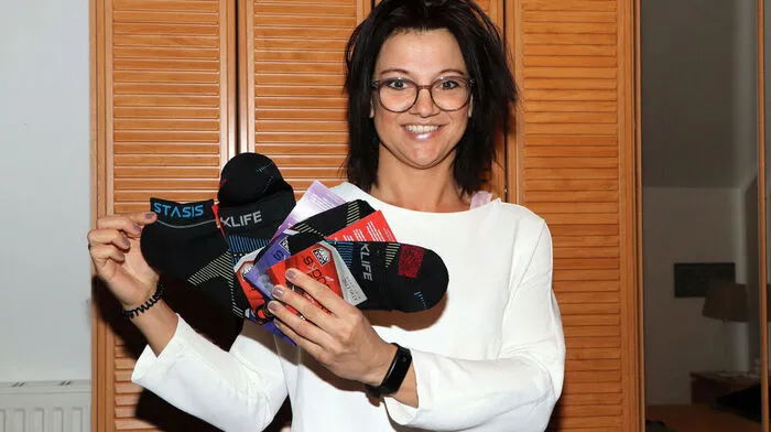 Daniela Biedermann mit einer Auswahl der Neuro Socks
