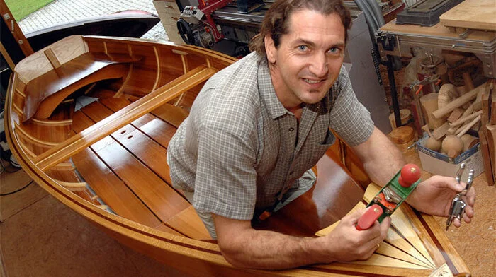 Ruderboot nachgebaut. Das Know-how hat er sich aus Büchern geholt.