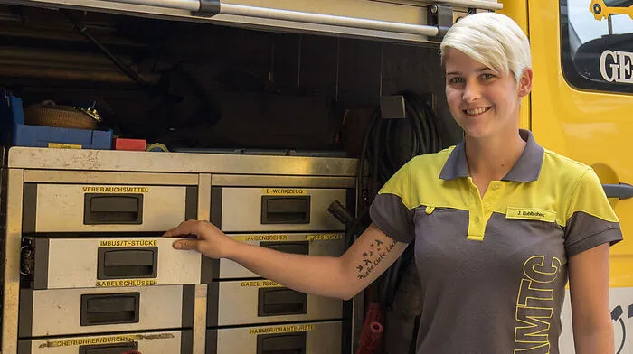 Jennifer Kubitschek ist die einzige Pannenfahrerin Kärntens. In der Männerdomäne setzte sich die 22-Jährige, die beim ÖAMTC arbeitet, durch.