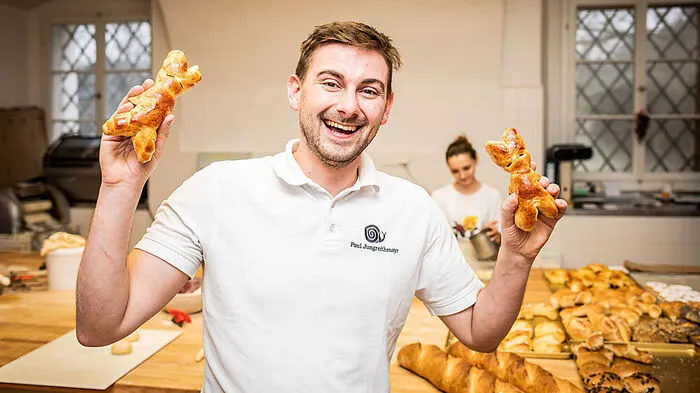 Pau Jungreithmayr (28), ein gebürtiger Oberösterreicher, bäckt mit seinem Team Semmel- und Brioche-Krampusse