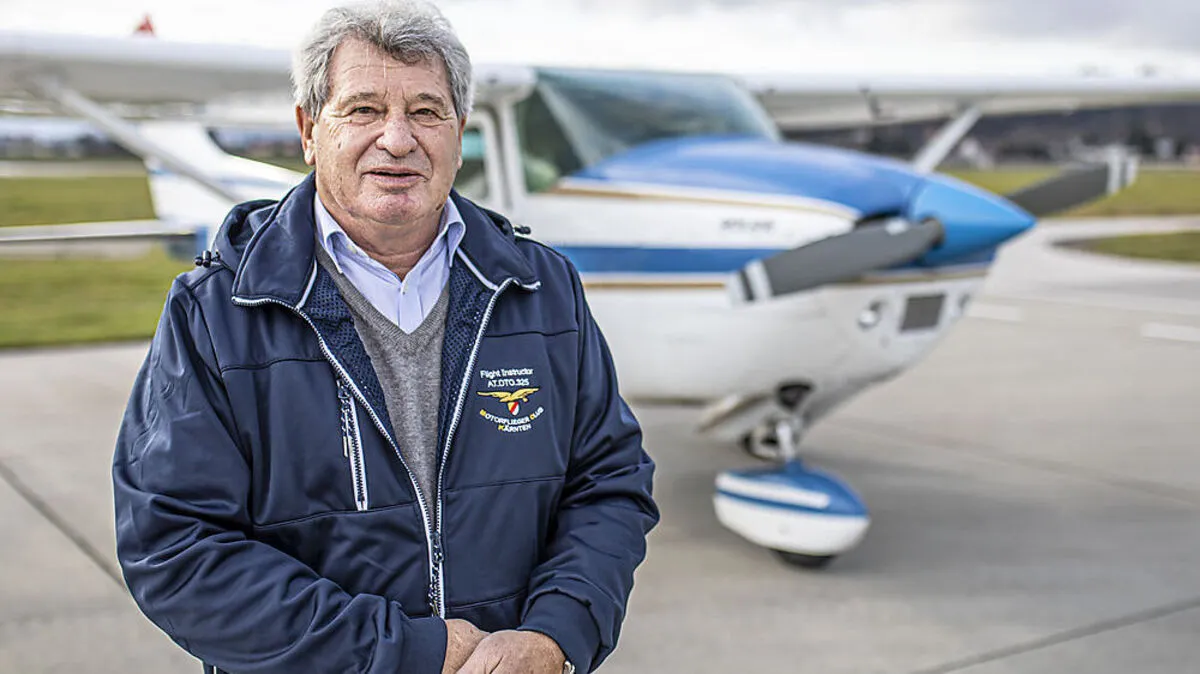 Johann Heinricher (70) leitet den größten Kärntner Motorfliegerclub. Einst war er sogar Österreichs jüngster Pilot.
