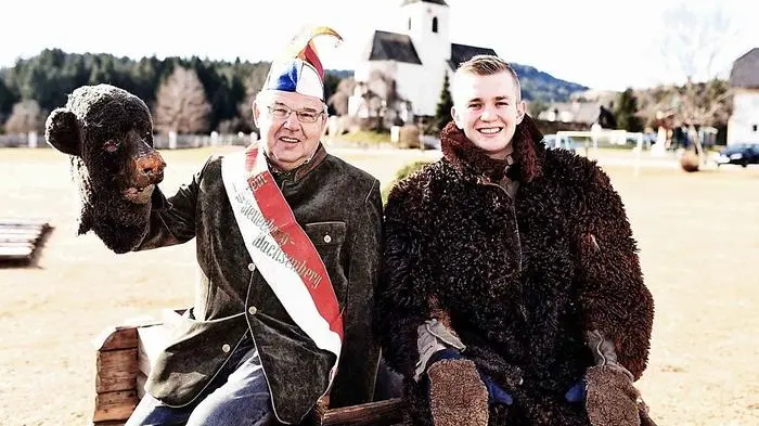 Beim Steuerberger Bärentreiben, das nur alle fünf Jahre stattfindet, stehen Sepp Rainer (70) als Organisator und Hannes Stich (21) als „Bär“ im Mittelpunkt.