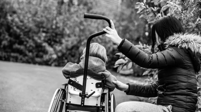 Wenn der Papa, der auswärts arbeitet, zu Hause ist, kümmern sie sich gemeinsam liebevoll um den Sohn. Fabian brabbelt vor sich hin und streichelt die Hand der Besucherin. Er lächelt entwaffnend. Die Mutter schaut auf die Uhr. Zeit, um Fabian zu duschen. Dazu bräuchten die beiden dringend einen eigenen für die Dusche geeigneten Rollstuhl. Baden darf Fabian wegen der Sonde nicht.
