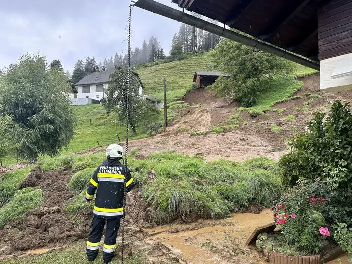 Am Samstag kam es aufgrund der starken Regenfälle zu einem großflächigen Hangrutsch am Magdalensberg. Infolgedessen musste eine Familie aus ihrem Wohnhaus evakuiert werden. Die Magdalensberger Straße - L85 - ist bis auf weiteres im betroffenen Bereich vollständig gesperrt.