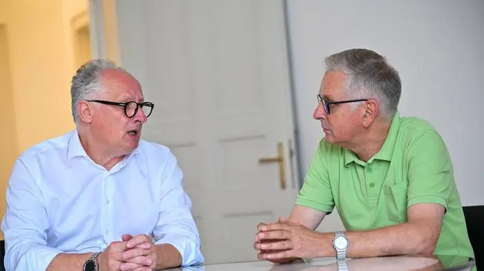 Im Gespräch (von links): „Klagenfurt Wohnen“-Geschäftsführer Gerhard Scheucher und Wohnungsreferent Alexander Kastner (TK)