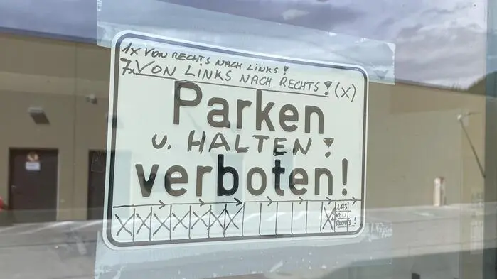 Eine kleine Tafel macht auf das Verbot aufmerksam. Diese ist nicht von jedem Parkplatz klar ersichtlich