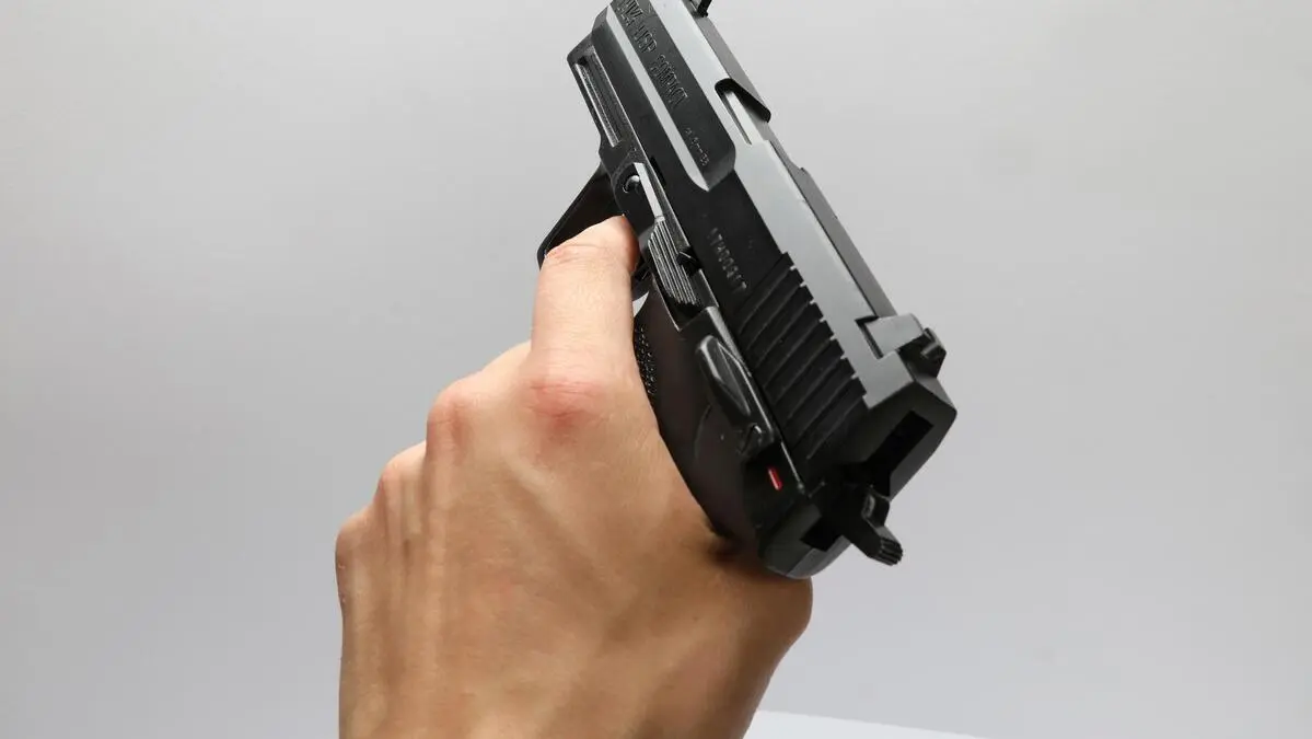 Ein Mann hält eine CO2-Pistole in der linken Hand  | Der Bruder ist seit dem Zwischenfall auf einem Auge fast blind