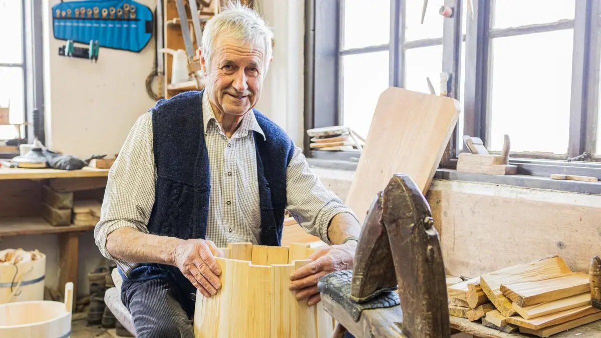Reportage. Niko Korenjak (77) aus St. Margareten im Rosental ist in dritter Generation Fass- und Geschirrbinder und einer der letzten seiner Zunft. In seiner Werkstatt fertigt er heute Spardosen, Brotdosen und anderes.