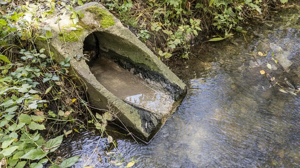 Rohr mit brauner Flüssigkeit in einem Bach | Über dieses Rohr fließen die Flüssigkeiten in den Bach in Klagenfurt