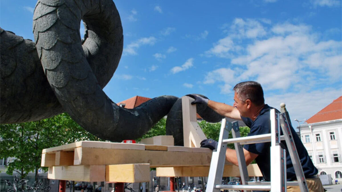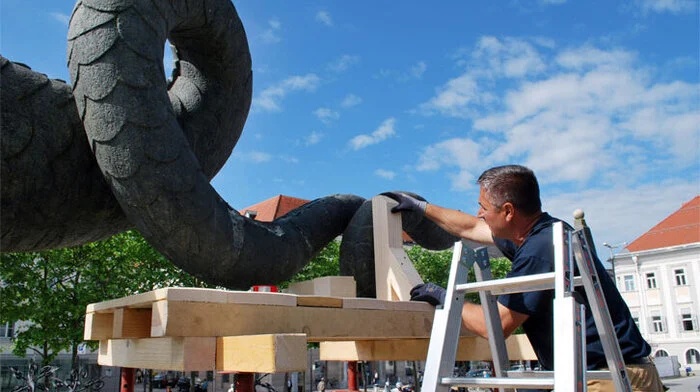 Der Lindwurm ist seit 1287 das Wappentier der Stadt. Vor rund 420 Jahren wurde sein steinernes Abbild geschaffen. Das nach wie vor begehrte Fotomotiv hat seither ganz schön viel erlebt.