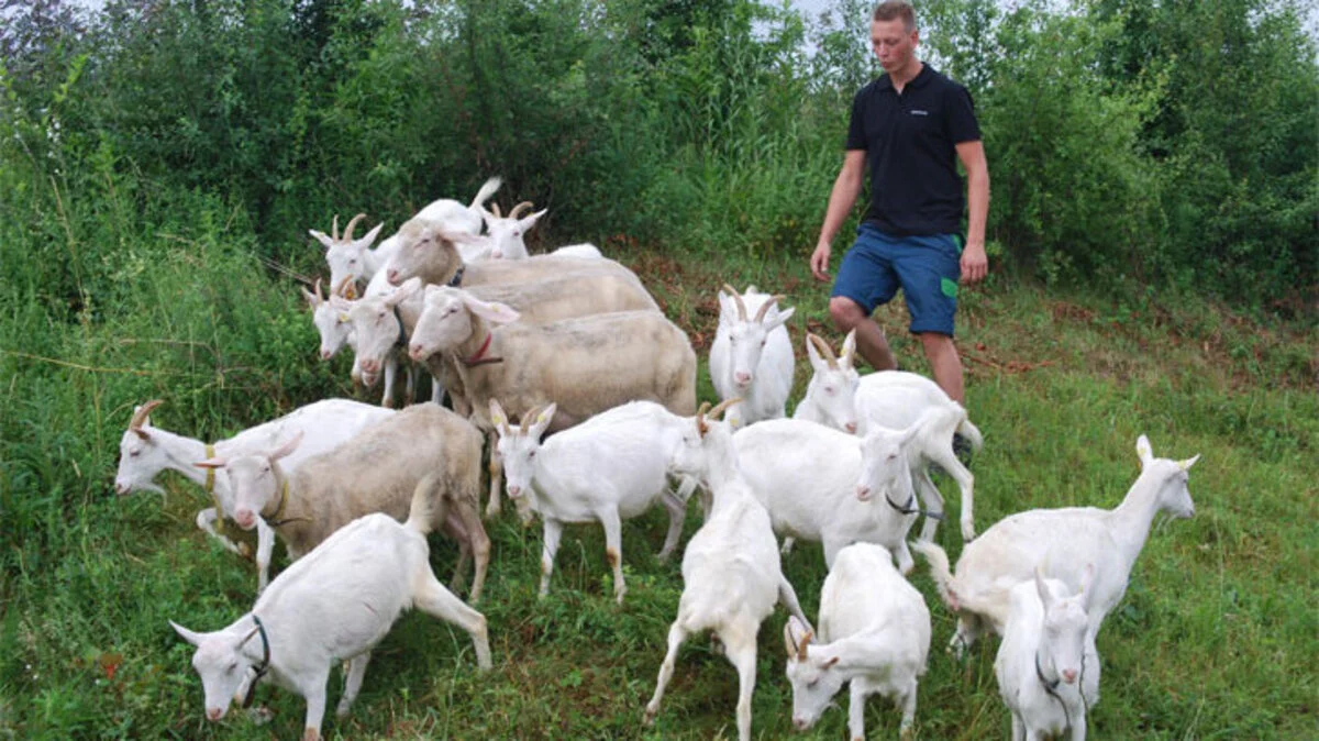 Im Rahmen eines Pilotprojekts in Kärnten fressen 14 Ziegen und vier Schafe den japanischen Staudenknöterich und einen wild wuchernden Neophyten. Das Gewächs verstopft die Entwässerungsgräben an den Bahndämmen.