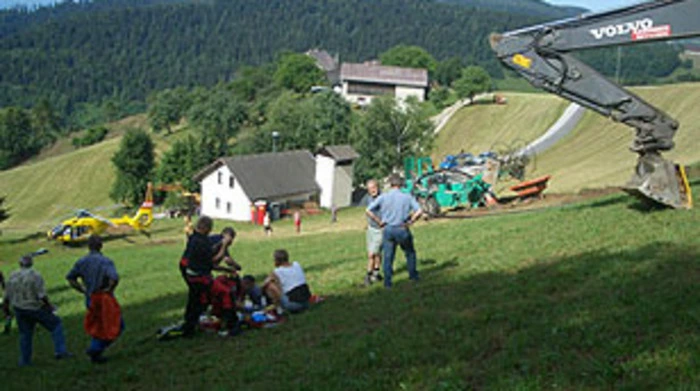 Bei Kanalarbeiten in Diex kam es Dienstagvormittag zu einem schweren Unfall. Ein 26-jähriger Klagenfurter stürzte mit seinem Bagger über eine steile Wiese.