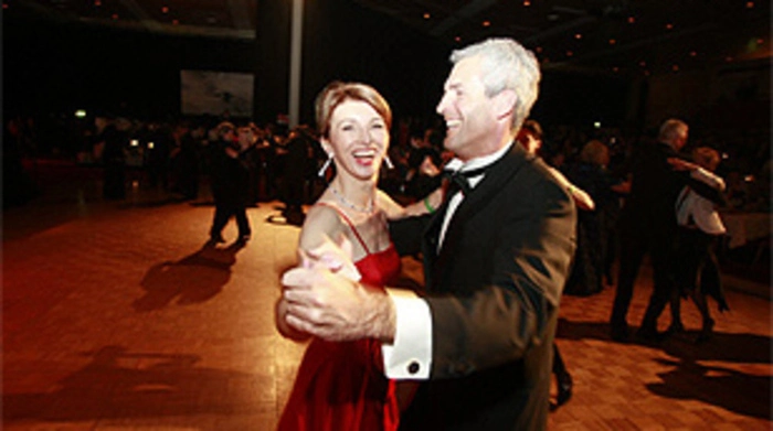 Ein Tupfer Rot muss bei diesem Ball dabei sein