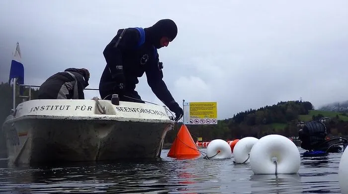 Um die Pfahlbausiedlung im Keutschacher See, es handelt sich um ein UNESCO-Welterbe, wurde aufwendig eine Schutzzone errichtet.