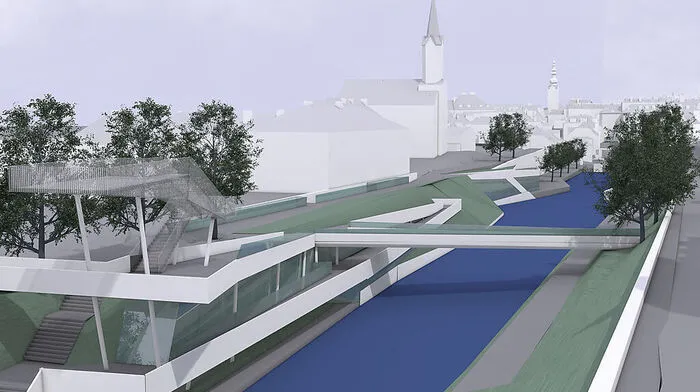Junges Klagenfurter Architektenduo entwarf eine kühne Vision mit Bibliothek und Veranstaltungshalle für den Lendkanal.