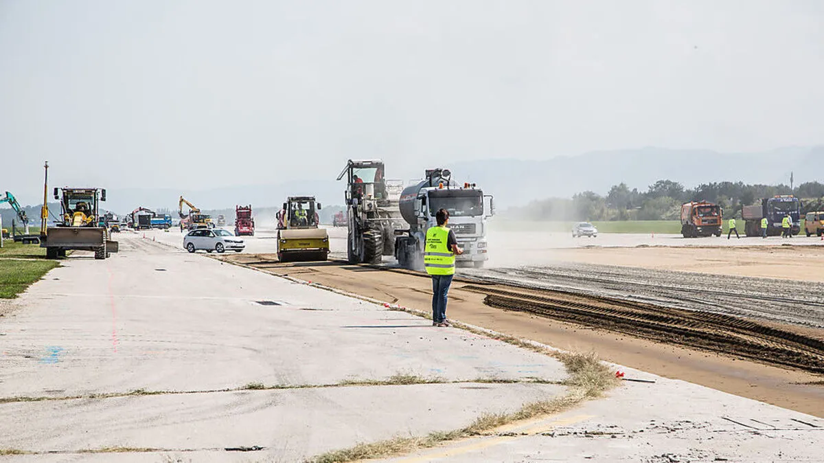 13,5 Millionen kostet die neue Landebahn am Flughafen. Während die Bagger rollen, steht der Flugverkehr drei Wochen still.