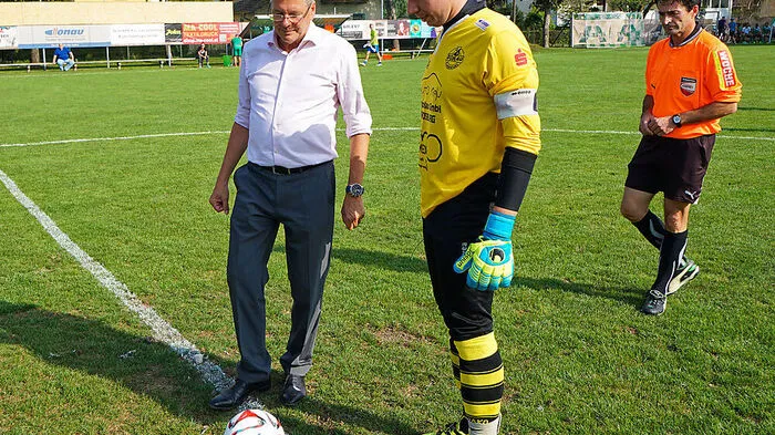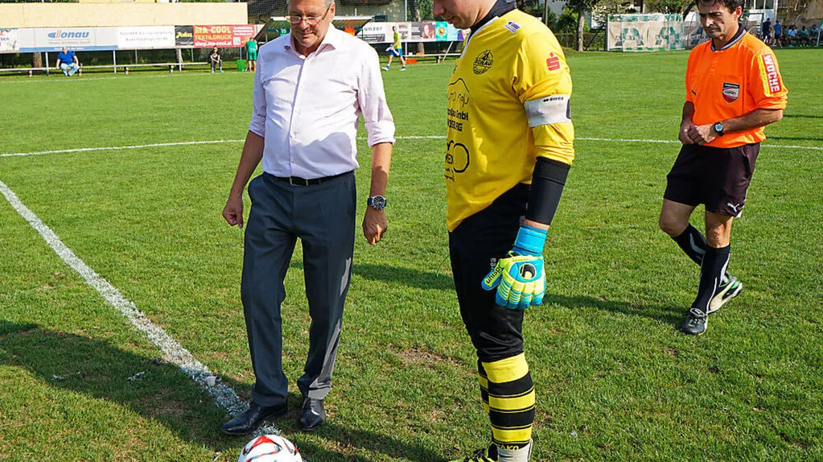 LH Peter Kaiser beim Ankick mit SV Donau Kapitän Raphael Thun-Hohenstein