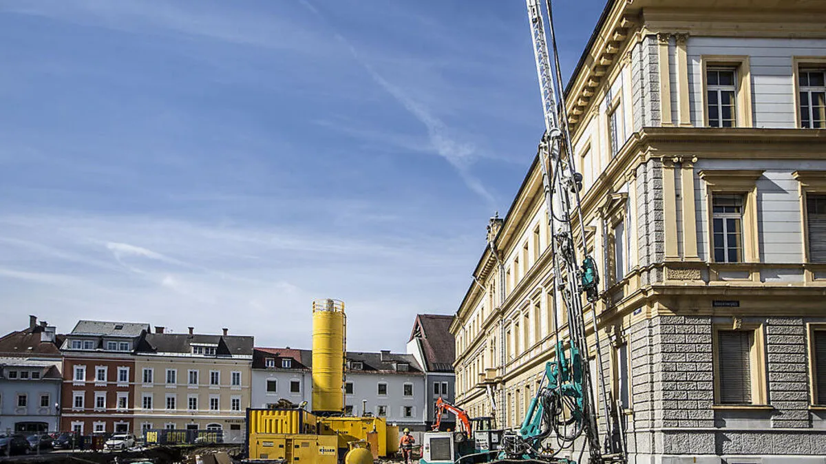 Der Bau des Vitaneums in Klagenfurt liegt im Zeitplan. Mit einem aufwendigen Verfahren wird der Aushub vorbereitet.