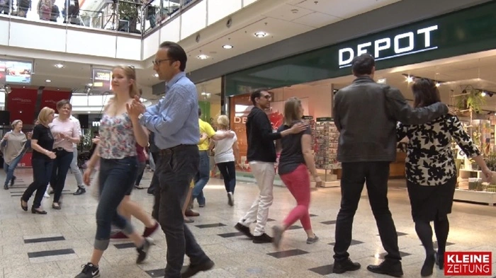 In den City Arkaden konnte man sich Samstagnachmittag spontan im klassischen Ball-Tanz versuchen. Für die meisten Besucher kam das überraschend, ist man hier doch sonst nur zum einkaufen. So wollte man auf den Stadtball aufmerksam machen, der am 28. April im Konzerthaus stattfinden wird.