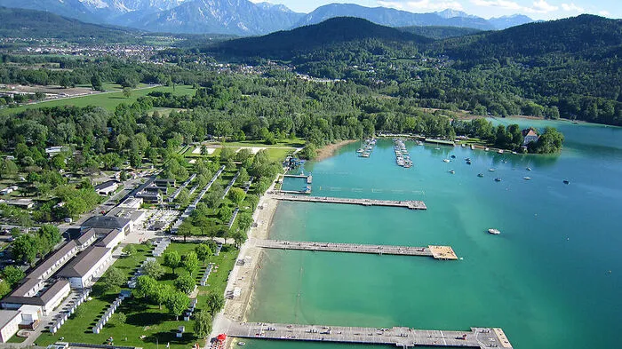 Die „Karibik“ Klagenfurts: Insgesamt 5000 Quadratmeter Liegefläche haben die drei Brücken im Strandbad. Jede 136 Meter lang und zumindest zwölf Meter breit