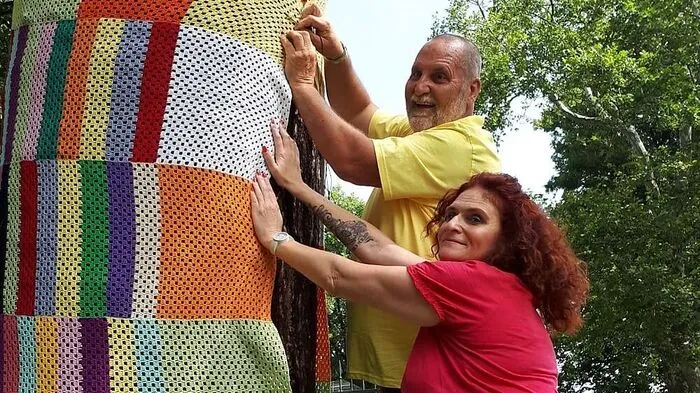 Ein dreiviertel Jahr lang hatten Maria Saaler und Maria Saalerinnen gestrickt. Jetzt haben sie ihre Umgebung eingekleidet.