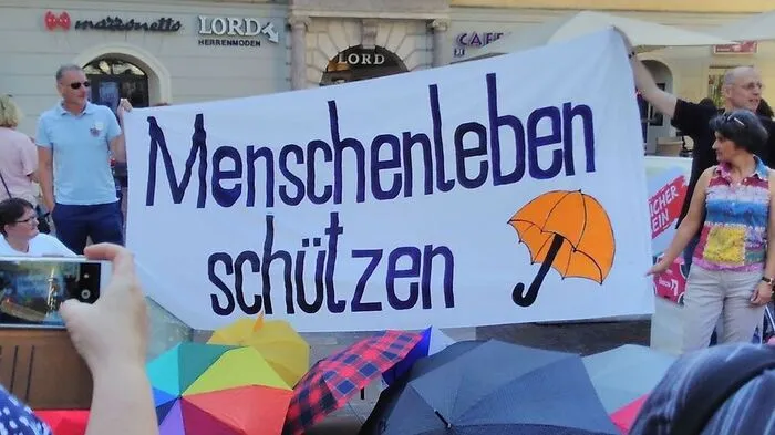 "Menschenleben schützen" lautete die Forderung der Teilnehmer der Kundgebung