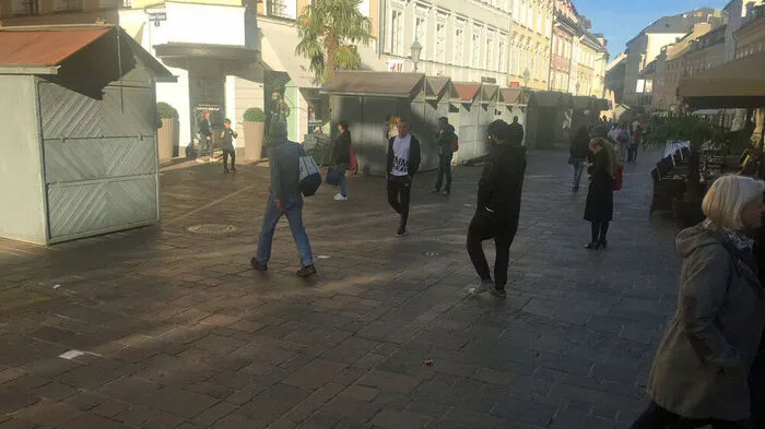 Am Alten Platz werden gerade Stände aufgebaut - immerhin noch nicht für die Glühweinsaison.
