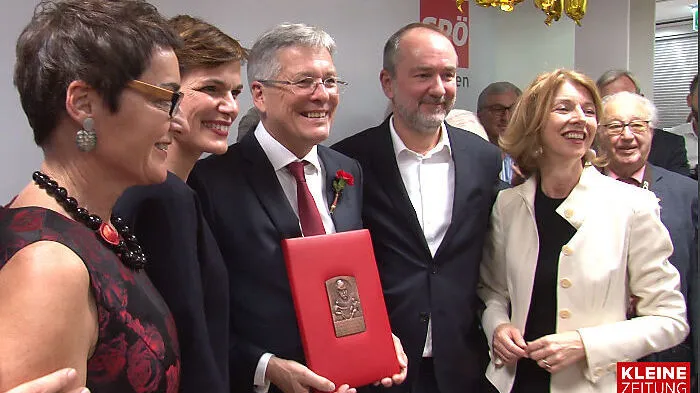 Landeshauptmann Peter Kaiser feierte seinen 60. Geburtstag in der SPÖ Zentrale in Klagenfurt. Unter den Gratulanten waren neben Altpräsident Heinz Fischer auch die neue SPÖ Parteivorsitzenden Pamela Rendi-Wagner. Dabei darf das quasi jüngste Mitglied der SPÖ einem der ältestgedienten Parteimitglieder zum Geburtstag mit großen Ehren ausstatten und ihm die Viktor-Adler-Plakette überreichen.