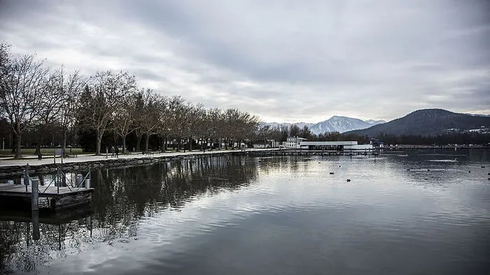 Trotz der Temperaturen knapp über dem Gefrierpunkt trauen sich einige Klagenfurterinnen immer noch in den Wörthersee.
