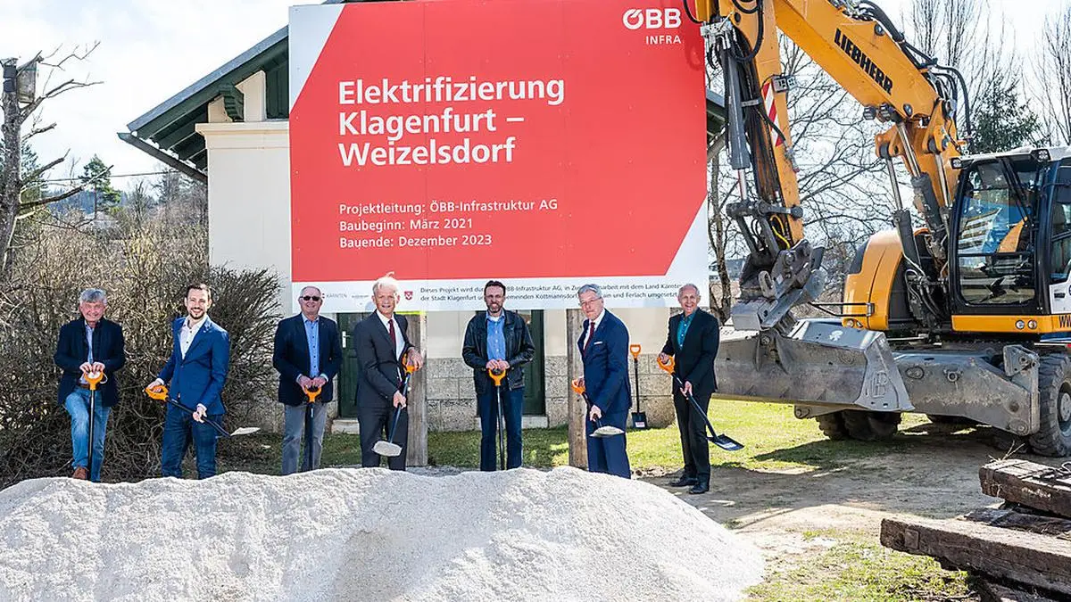 Die Rosentaler Bahnstrecke zwischen Klagenfurt und Weizelsdorf soll ab 2023 schneller und vor allem umweltfreundlicher sein. Der offizielle Bauauftakt für das Mega-Projekt, das insgesamt 50 Millionen Euro kostet, fand am 1. April statt. Mit dabei: Landeshauptmann Peter Kaiser, Mobilitätslandesrat Sebastian Schuschnig, Vize-Bürgermeister Jürgen Pfeiler, die Bürgermeister Josef Liendl, Franz Ragger, Vize-Bürgermeister Christian Gamsler und Vorstandsdirektor Franz Bauer von der ÖBB-Infrastruktur. Die Kosten übernehmen zum Großteil die ÖBB im Rahmen ihres großen Kärnten-Investitionspaketes, welches mit dem Land ausverhandelt wurde. Zwei Millionen Euro steuert das Land Kärnten bei und 400.000 Euro die Gemeinde Köttmannsdorf, die eine neue Haltestelle erhält. Außerdem verpflichten sich die Gemeinden die Park&Ride-Anlagen zukünftig instand zu halten.