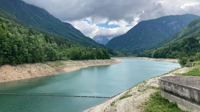 Das allerdings ist einstweilen (vorläufig) Geschichte. Bereits im Vorjahr hat die Kelag nämlich den Wasserstand im Speicher in den Karawanken um sieben Meter unter das Vollstauziel abgesenkt. Ursache für diese Maßnahme sind Veränderungen, die im Bereich der linken Bergflanke unterhalb des Dammes festgestellt worden sind. Im Zuge der Absenkung ist auch ein kleiner Teil des einst im See versunkenen Dorfes Homölisch wieder aufgetaucht.