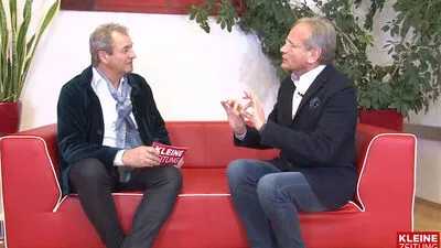 Kleine Zeitung mit weißer Schrift auf rotem Hintergrund.