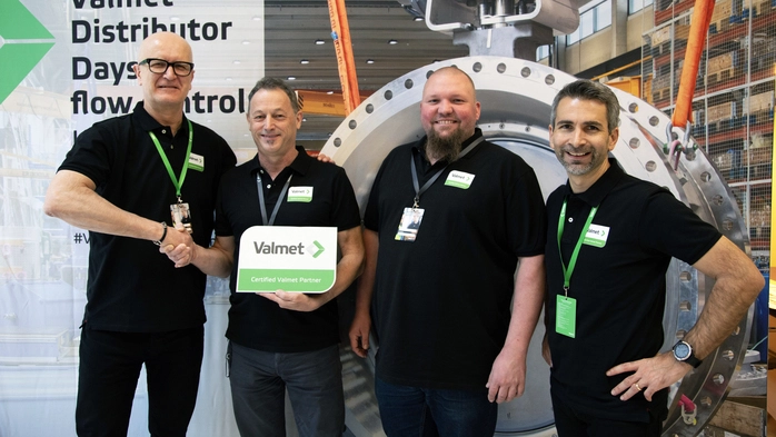 Von links: Timo Hänninen, Vice President Flow Control Market Area Europe, mit Roman Dengg und Gernot Koinig von der PMS valveTec GmbH und Raimar Hellwig