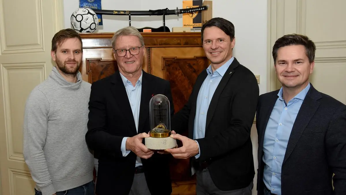 Die Übergabe fand im Europaschutzgebietszentrum Mannsberg Boden statt. Gemeinderat Karl Heinz Smole (SPÖ) nahm den Pokal stellvertretend für Bürgermeister Alexander Radl (SPÖ) entgegen und würdigte den Einsatz aller Beteiligten. Inzwischen hat die „Goldene Unke“ ihren Platz im Bürgermeisterbüro gefunden, wo sie von Bürgermeister Radl, Umweltreferent Vizebürgermeister Jürgen Jöbstl und Projektleiter Stephan Stückler („Blühendes Unterkärnten“) begrüßt wurde.