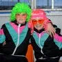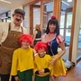 Mehrere Menschen sind verkleidet und lachen in die Kamera