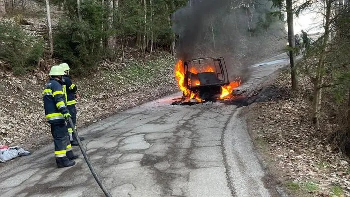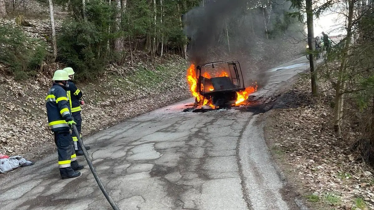 Im Lavanttal brannte Samstagfrüh auf einem Waldweg ein Puch Haflinger. Durch das rasche Eingreifen der Feuerwehrleute konnte das Feuer rasch gelöscht werden.