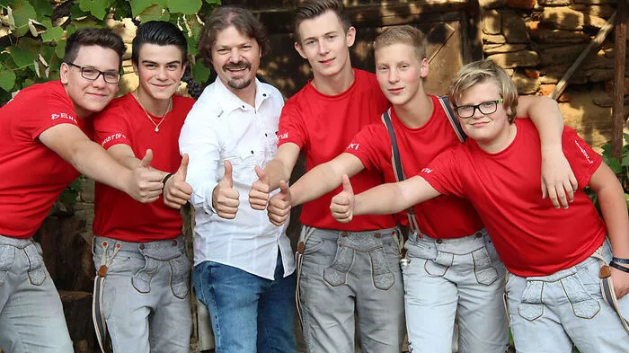 Von links: Benjamin Mannsberger, Christoph Stocker, Produzent Charly Raneg, Christian Kampl, Maximilian Kaimbacher und Kevin Karnitschnig