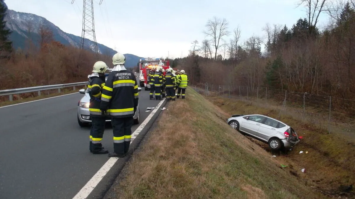 Wolfsbergerin kam auf der Gailtalstraße von der Fahrbahn ab und stieß frontal gegen die Straßenböschung. Sie wurde schwer verletzt, am Auto entstand Totalschaden.