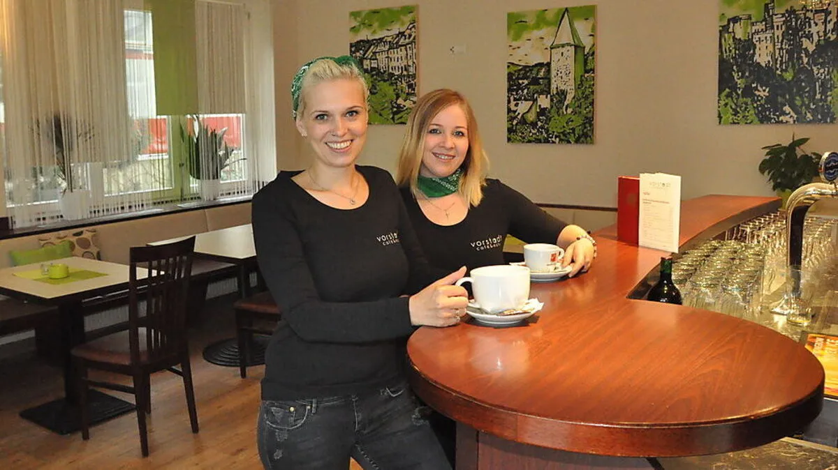 Katja Rupacher-Hoffmann (links) eröffnet morgen das „Vorstadt Café“. Unterstützt wird sie von ihrer Angestellten Carina Scharf