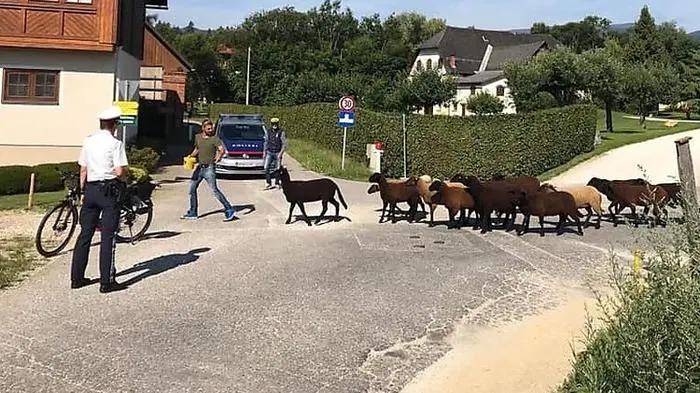 Junge Schafsherde bekam Polizei-Eskorte