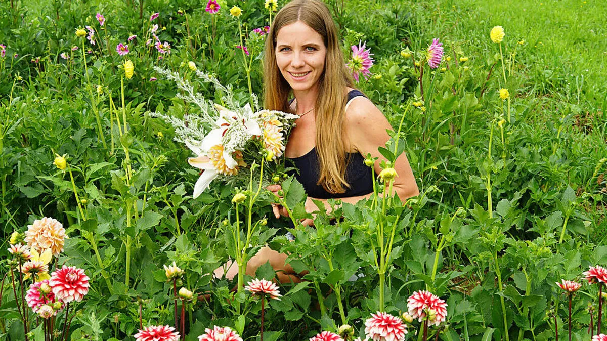 Martina Schwarzl betreibt die „Blumenfarm“ in Eitweg und bietet Sträuße und Pflanzen an.