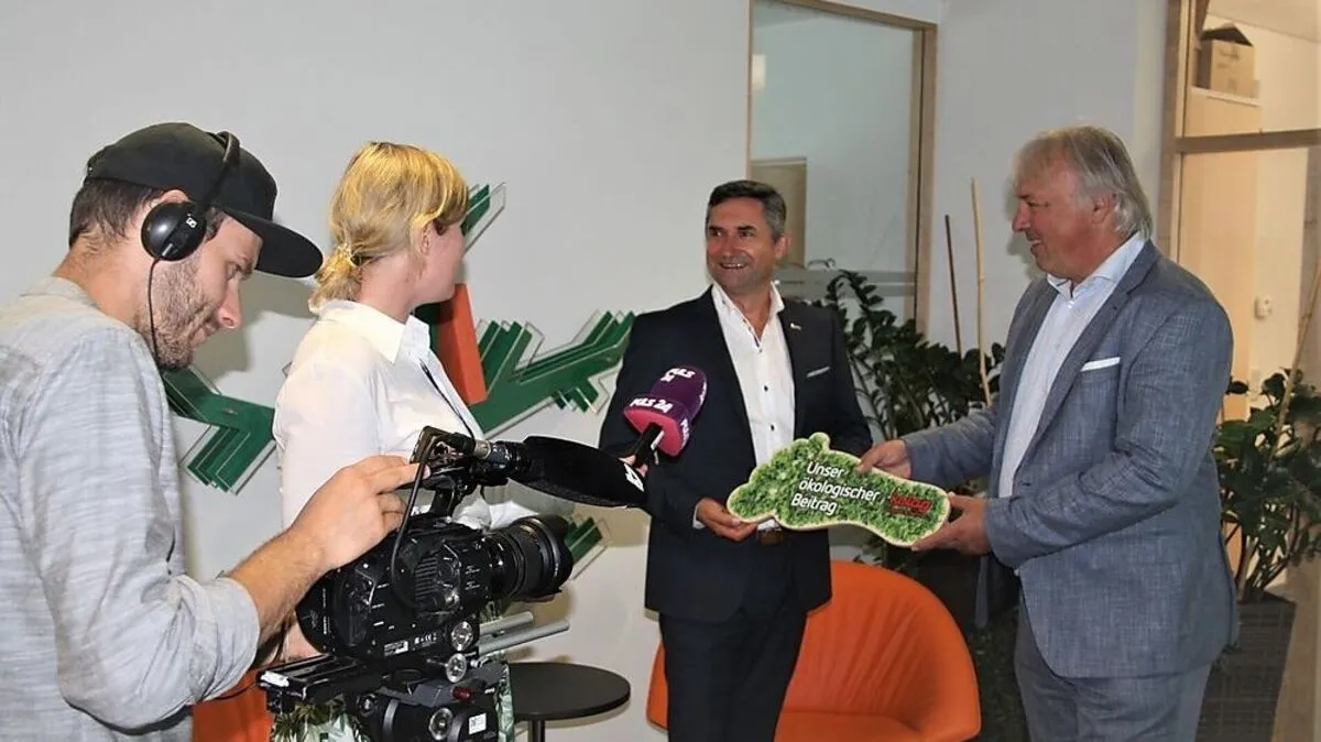 Gottfried Joham und Adolf Melcher beim Interview mit dem Fernsehsender