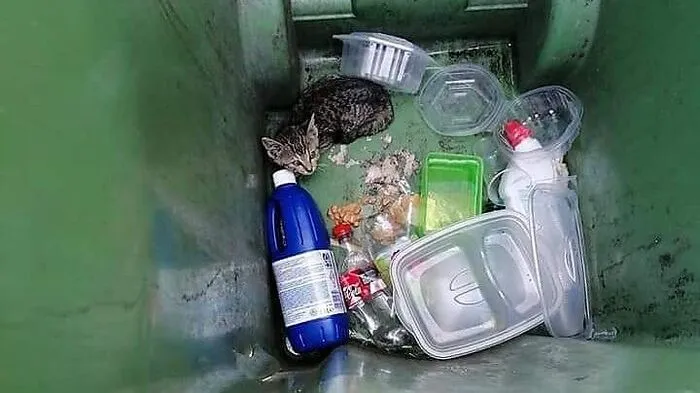 Die Katze befand sich in einer geschlossenen Mülltonne
