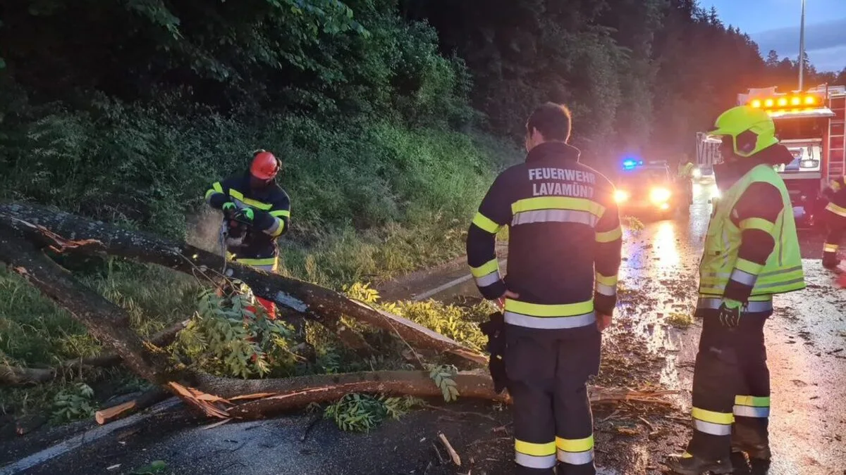 Einsatzkräfte der Feuerwehr Lavamünd mussten in den frühen Morgenstunden umgestürzte Bäume von der B 80 und L 135 entfernen. Auch in Prebl fiel eine Fichte auf die Fahrbahn.