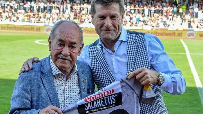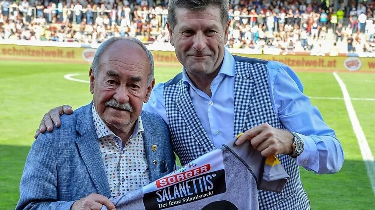 Der Wolfsberger "Modezar" und WAC-Fan Werner Kristan bekam das große Ehrenzeichen des ÖKB-Stadtverbandes in Silber verliehen. Zu seinem 80. Geburtstag bekam Kristan zudem ein WAC-Dress von Dietmar Riegler überreicht.