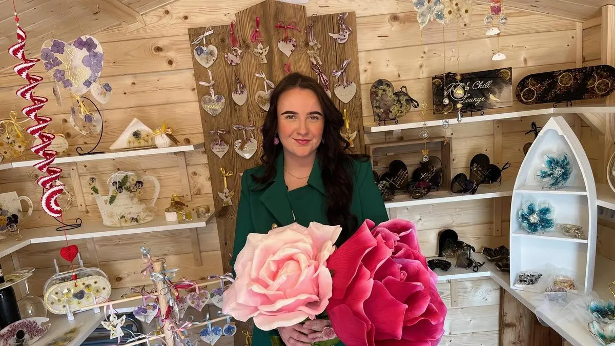 • Sie spezialisiert sich auf die Herstellung von Schmuck und Dekorationen aus Epoxidharz, in das echte Blüten eingegossen werden.